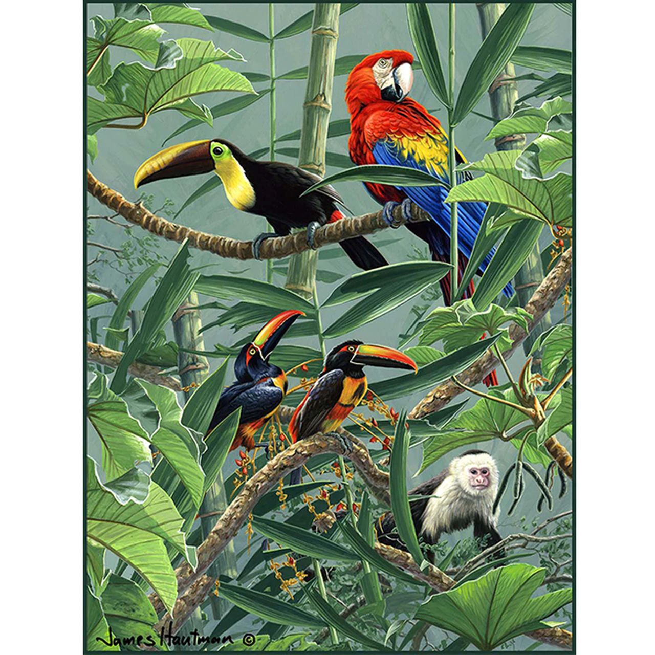Affe und Vögel